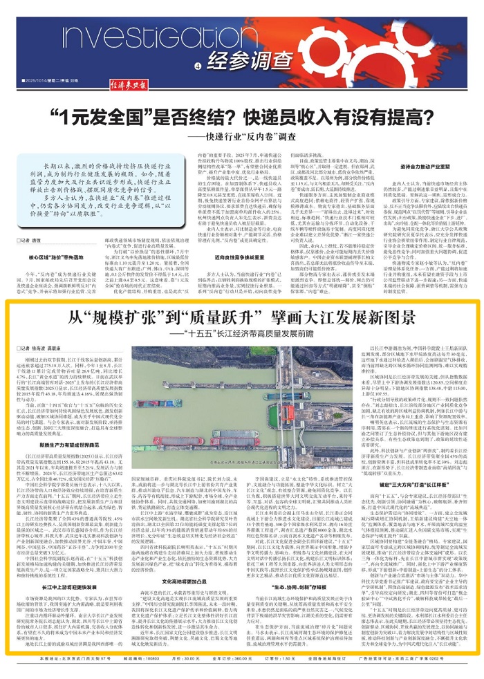 “十五五”时期是长江经济带迈向更高质量、更可持续、更协调发展的关键阶段。水利部长江水利委员会主任廖志伟表示,在此关键期,长江经济带必须坚持生态优先、创新驱动、区域协同、开放共赢的发展理念,以协同融通与制度创新为突破口,着力解决发展中的结构性与区域性短板,推动科技创新与产业创新深度融合,不断提升文化软实力和全球竞争力,为中国式现代化注入“长江动能”。
