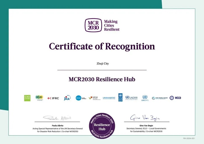 2024年,联合国减灾署公布“世界韧性示范城市”名单,浙江省诸暨市成为继韩国仁川、菲律宾马尼拉、韩国蔚山之后,亚太地区第4个获此称号的城市,也是全国首个“世界韧性示范城市”。