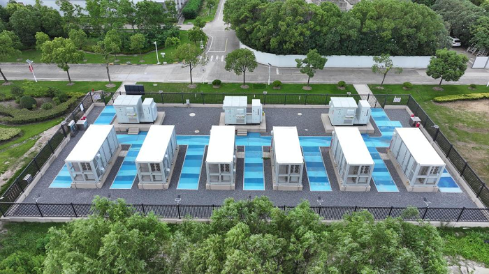 储能项目:智慧调控实现“削峰填谷”与安全运行 竹园7.5兆瓦/20.64兆瓦时储能项目位于竹园污水公司(浦东新区高东镇东电路160号)西北角,占地面积约940平方米,采用室外集装箱式布置,由6台3.44兆瓦时储能电池集装箱(含磷酸铁锂电池、EMS、BMS、热管理系统及消防系统等核心设备)和3台2.5兆瓦变流变压一体机组成,经过电缆接入3号、4号主变6千伏母线侧。项目于2024年5月30日开工,9月29日启动设备试运行,2025年8月29日完成竣工验收,运行初期即展现强劲效能。