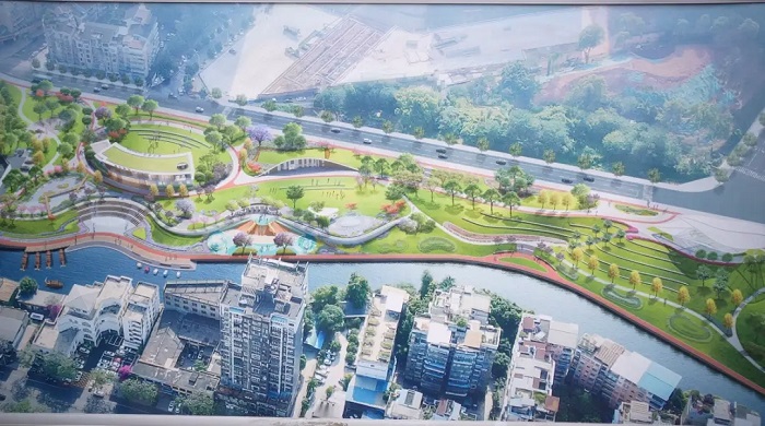 该公园占地约3万平方米,建设内容涵盖亲水码头、海绵型公园绿地、慢跑步道、雨水花园、音乐喷泉、亲水广场、浅滩戏水区等,配套2个城市驿站与1个儿童活动区。项目自今年1月起打围施工,目前亲水码头主体已完工,公园总体施工完成30%。