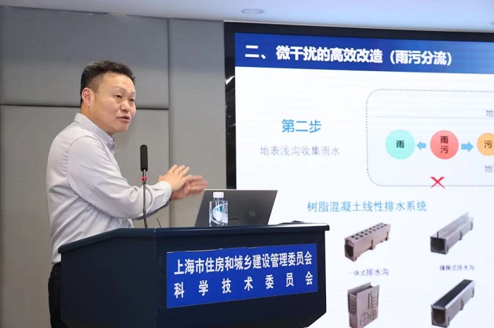 海绵城市建设是城市尺度的系统工程,需要多专业协同。全国工程勘察设计大师、海绵城市建设工程技术创新中心主任张辰在会上首先系统阐述了全域海绵城市建设的技术逻辑、实施路径与长效机制。在介绍上海“十四五”海绵城市建设取得的显著成效时,他详细解读了2030年新增450平方公里达标区等目标规划,以及四类管控分区的差异化指标制定,并分享了通过源头减排、过程控制、系统治理全链条推进的多个海绵改造实例,为超大城市海绵城市建设提供了权威技术示范。