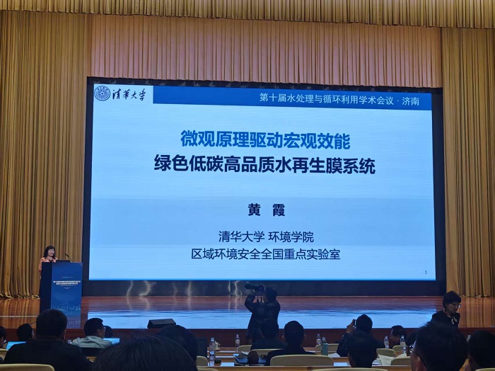 大会特邀报告环节由清华大学文湘华教授主持,多位院士及行业领军专家带来重磅分享。中国科学院生态环境研究中心曲久辉院士深入解析了氢键在水体系中的作用机制,提出从微观调控实现水处理高效低碳的新思路;中国科学技术大学俞汉青院士聚焦双氧水绿色制备与应用,倡导发展原位制备技术以提升水处理安全与效率;清华大学黄霞教授则从膜材料、工艺优化等维度,阐述了微观机制驱动膜系统效能提升的实践路径。