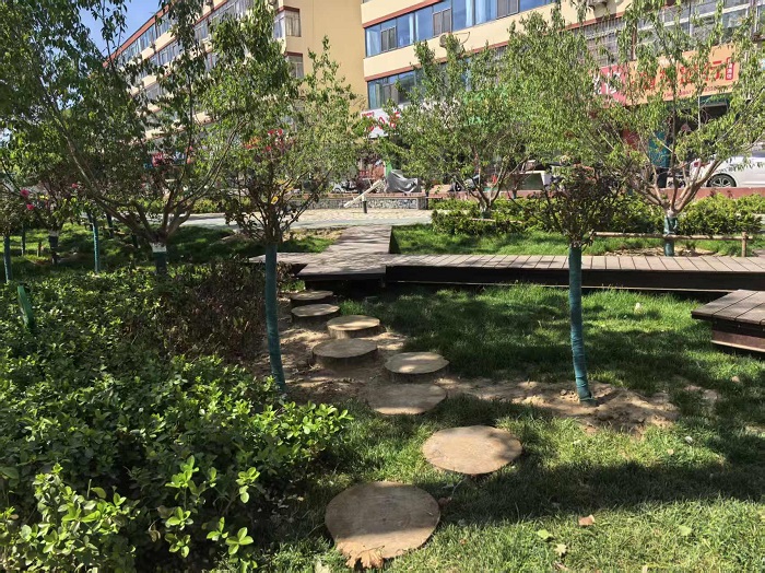 在景观打造上,胡堂排干暗涵上方海绵改造项目深度融合生态底色与美学质感,科学搭配了乔、灌、草及各类花卉,构建起高低错落、层次丰富的绿植景观。项目依托爬墙月季点缀木质廊架,打造别致立体花墙,藤蔓交织、繁花相映;通过合理优化植物布局,丰富季相变化;蜿蜒顺畅的休闲健步甬道贯穿全程,串联起沿线居住片区、沿街商业、城市道路与公共空间,让市民可漫步、可休憩、可赏景;精致小巧的休闲小品点缀其间,与透水甬道、绿地花卉相映成趣。同时,还科学配置了儿童游乐设施,完善全龄友好空间功能。