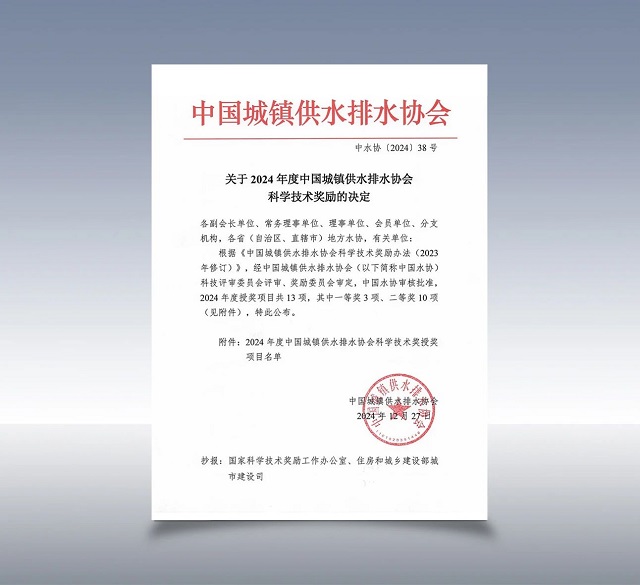 中国城镇供水排水协会科学技术奖作为城镇供水排水行业最具权威的奖项,旨在推动城镇供水排水行业科技创新与技术进步,加速科技成果转化,激励在城镇供水排水行业科技进步中做出突出贡献的单位,本年度共评出获奖项目13项,其中一等奖3项、二等奖10项。