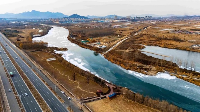 冬日里的洋河河道水清岸洁。