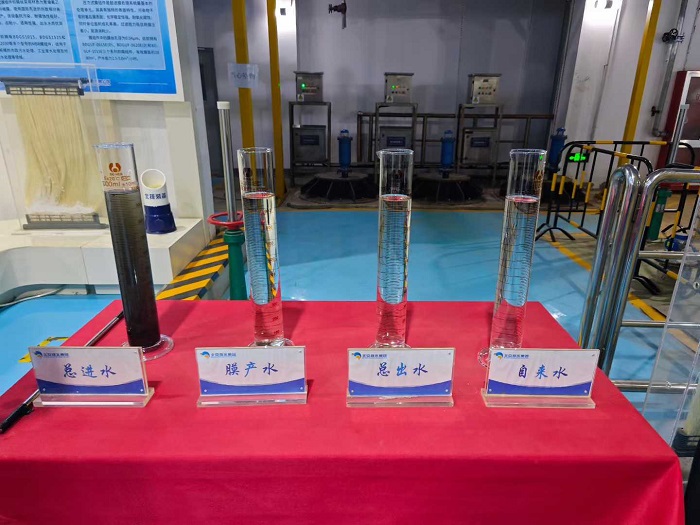 从生物池出来后,污水便进入了膜池。槐房再生水厂应用了北排集团自主研发的“膜科技”,采用了先进的膜生物反应器(MBR)污水处理工艺,隐藏于污水下的MBR工艺超滤膜产品,可以高效去除污水中99%的悬浮固体以及绝大部分细菌、微生物。