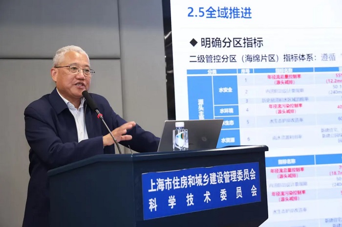 海绵城市建设是城市尺度的系统工程,需要多专业协同。全国工程勘察设计大师、海绵城市建设工程技术创新中心主任张辰在会上首先系统阐述了全域海绵城市建设的技术逻辑、实施路径与长效机制。在介绍上海“十四五”海绵城市建设取得的显著成效时,他详细解读了2030年新增450平方公里达标区等目标规划,以及四类管控分区的差异化指标制定,并分享了通过源头减排、过程控制、系统治理全链条推进的多个海绵改造实例,为超大城市海绵城市建设提供了权威技术示范。